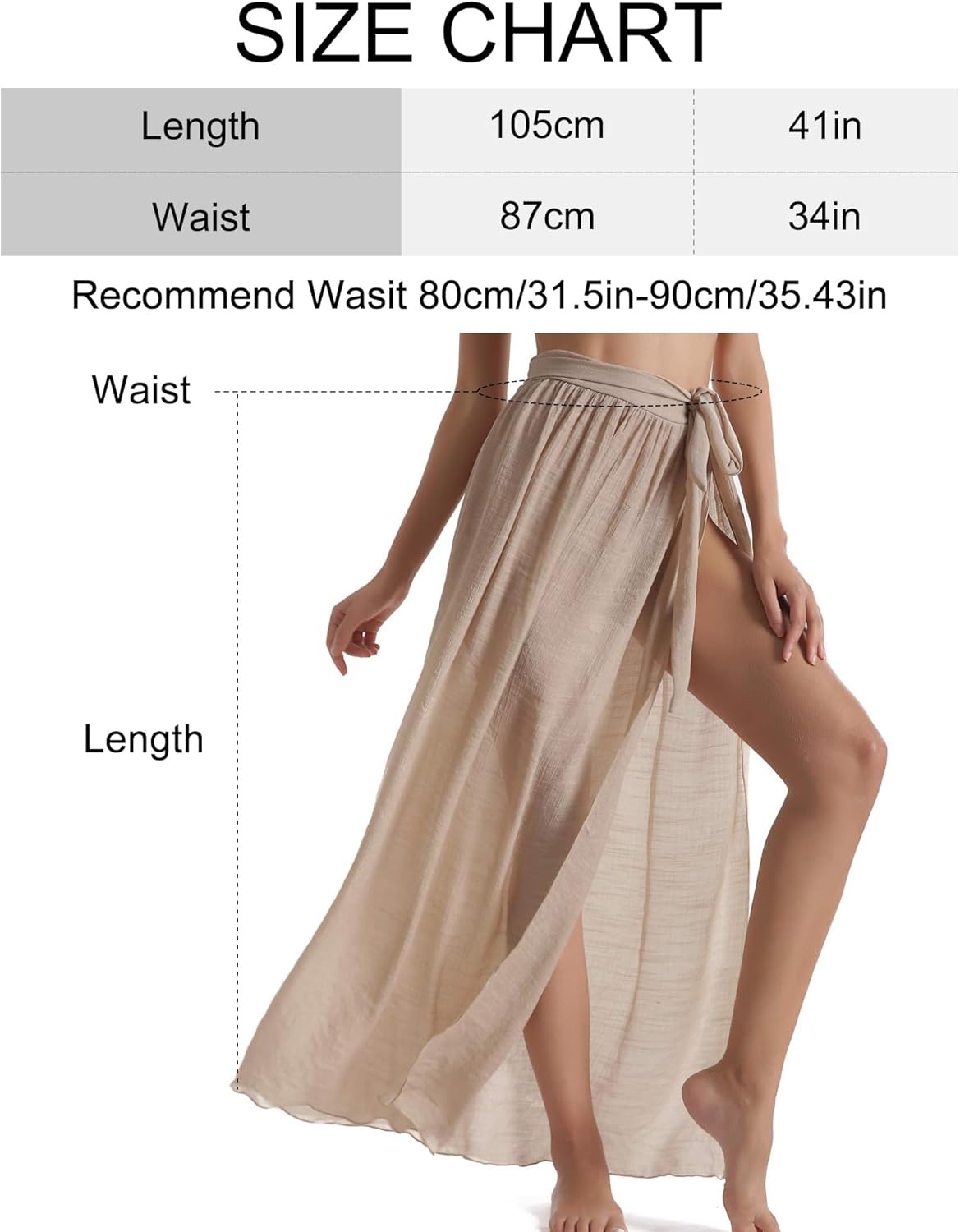 - Adjustable Waistband: Suit US 4-12,Recommend Wasit 64cm/25.2″-94cm/37″(Waist 84cm-Not Incloude Belt Length;Length 108cm)The beach skirt wrap cover up with adjusting belt is suitable for most women and girls to wear in hot summer. The waistband can help show your slim body