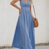 - Feature: v neck dres; beige dress; summer dresses for women; cutout dress; maxi dress for women; long dress; casual dress; a line dress; pleated dress for women; self tie back dress; sleeveless dress; beach dress; vacation dress; wedding guest dresses for women; bridesmaid dress