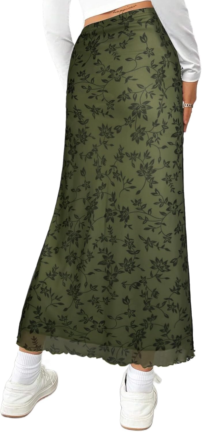 Women Mesh Slit Split Long Skirts High Waisted Sexy Summer Maxi Skirts