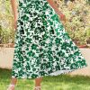 Women Midi Summer Elastic High Waist A-Line Flowy Swing Asymmetric Tiered Skirt Dress with Pockets