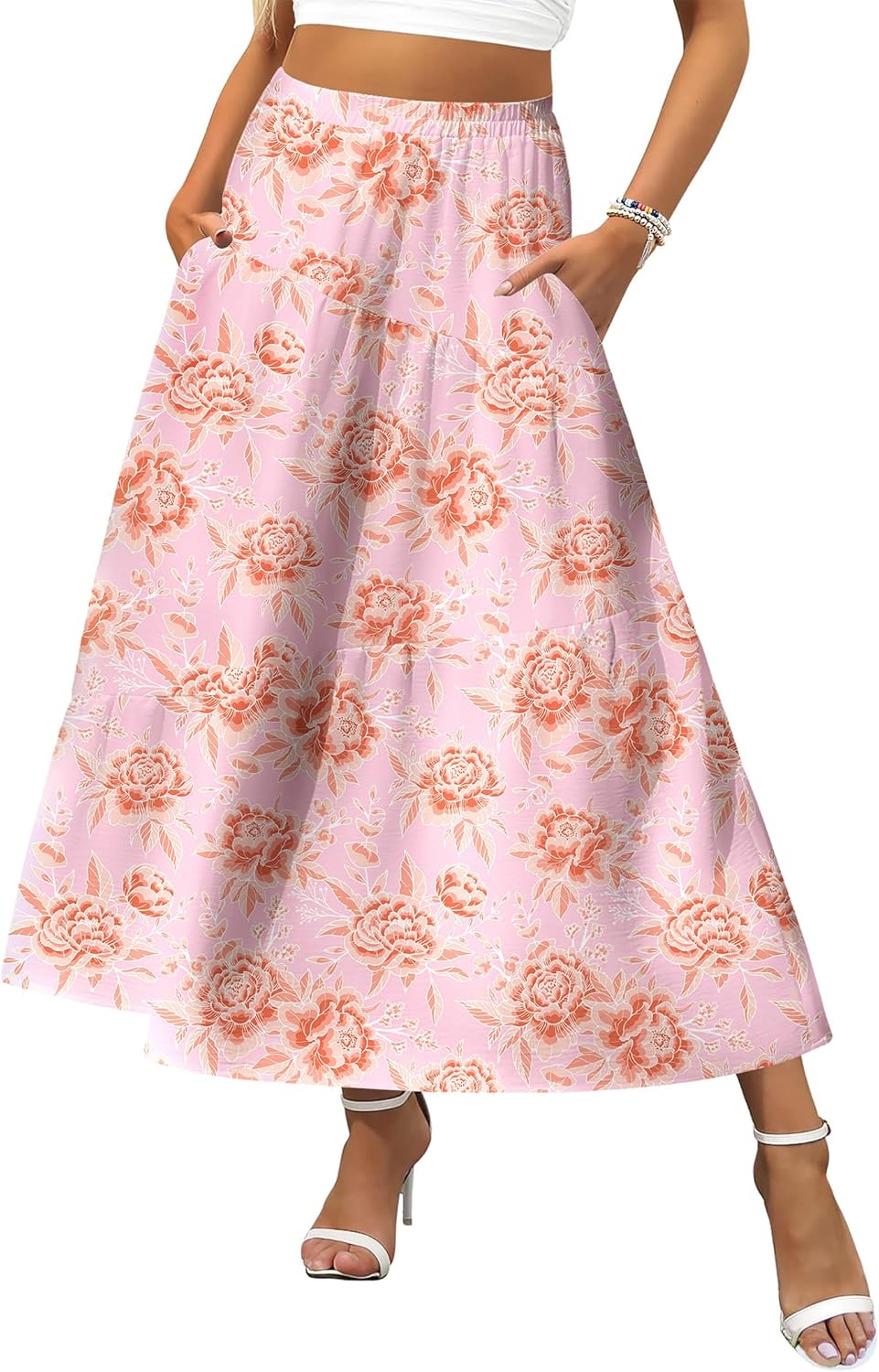 - 【Feature】: Maxi skirts for women comes with floral print/elastic high waist/a-line long skirts/flowy swing skirts/asymmetric tiered beach skirt with pockets/ankle length skirt/boho maxi skirt
