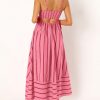 - Fashion beautiful aline striped dress for women long, featuring vintage striped printed pattern, stretch smocked design at back, flattering striped cut out maxi dress. Trendy elegant vertical striped maxi dress for women sleeveless, color block striped smocked dress women strappy, with pockets for convenience, can be dressed up and down as you like.