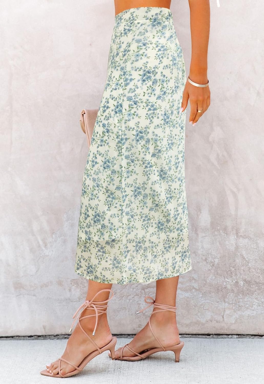 - Feature:Floral print,chiffon midi skirt,zipper closure,high waist,back elastic waistband,elegant and generous midi skirt,Summer Boho Skirt has unique floral print that shows your unique personal charm and produces an elegant visual effect.