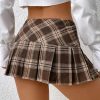 - Feature: Plaid tartan print, pleated hem, school uniform mini skirt