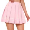 - Design: Pleated mini skirts for women, womens solid color mini skirt with white stripe hem, red polka dot skirt for women, women girls uniform cheerleader skirt, high waist pleated mini skirt for women ladies, with high stretchy waistband, white stripe hem pleated mini skirt, a-line style, with no under shorts.