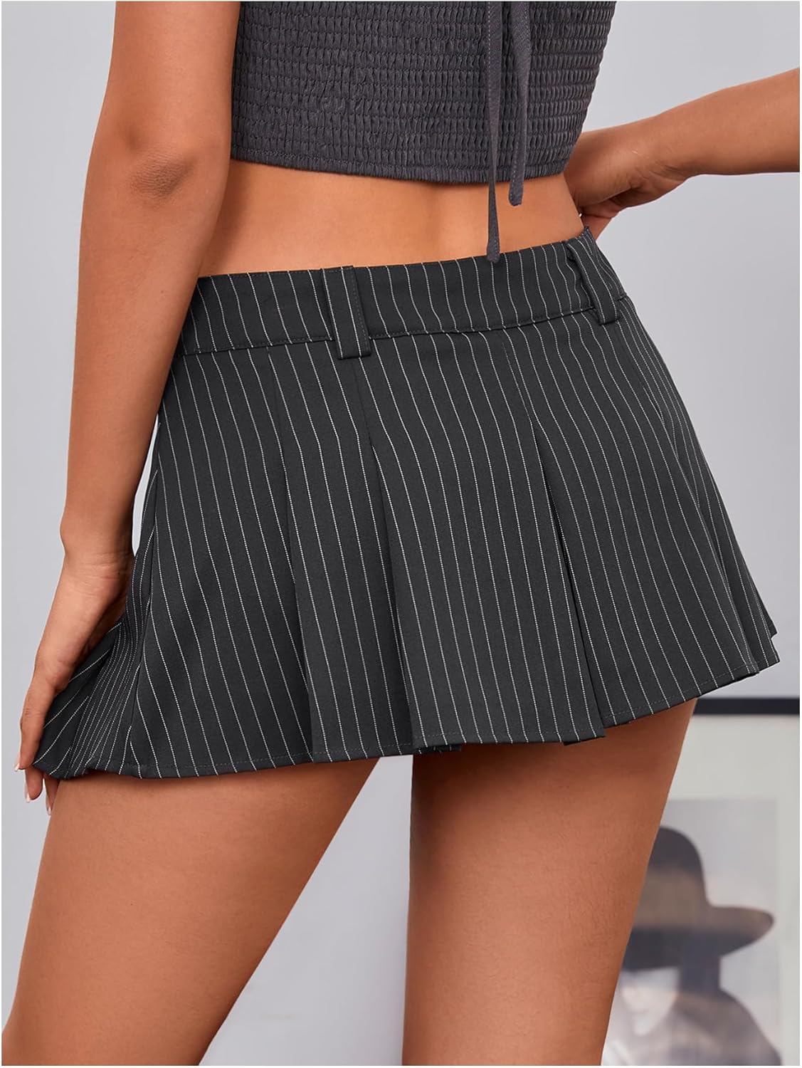 - Feature: Striped, Pleated Hem, Low Waisted, Zipper Fly, Trendy Skater Skirt for Women