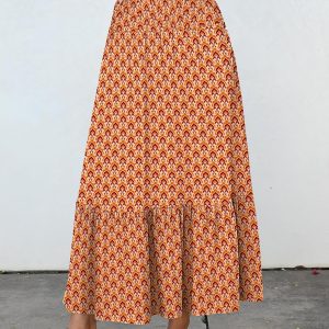 High Waist Tiered Skirts for Women Flowy Skirts for Women Below Knee with Pockets Fashion Trendy
