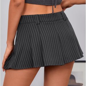 Women’s Striped Low Waisted Pleated Mini Skirt Y2k Trendy Short Skater Skirts